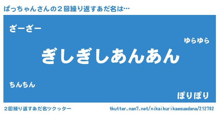 | 意味不明あだ名 | 『永久保存ばっちゃん』 |