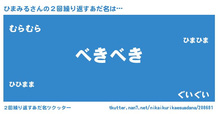 | ヘコむあだ名 | 『ひまみる(小並感)』『ひまにー』 |