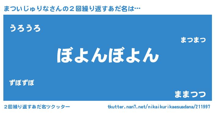 | 胡散臭い通販商品みたいなあだ名 | 『モンドセレクションを受賞した隕石のかけら…その名も「まついじゅりな」』 |