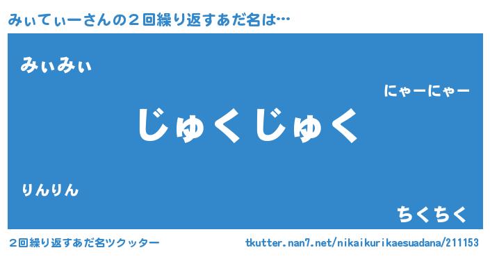 | 意味不明あだ名 | 『住所不定無職みぃてぃー(7歳)』 |