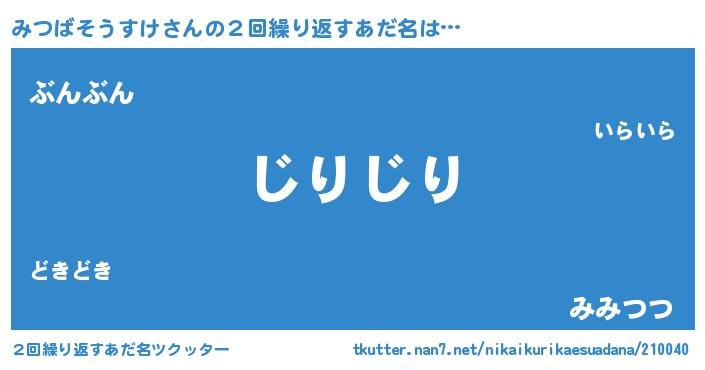 | 意味不明あだ名 | 『住所不定無職みつばそうすけ(91歳)』 |