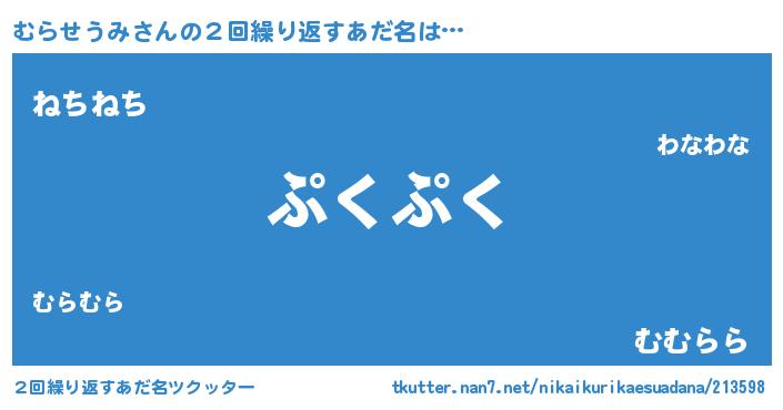 | ポケモン風あだ名 | 『ムックウザ』『ヒムラセウミ』 |