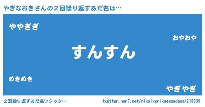 | 意味不明あだ名 | 『住所不定無職やぎなおき(98歳)』 |