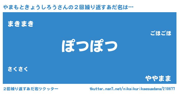| 男性向けラノベタイトル風あだ名 | 『ノーゲーム・ノーヤマモトキョウシロウ』 |