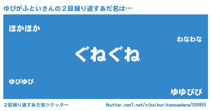 | 意味不明あだ名 | 『永久保存ゆびがふとい』 |