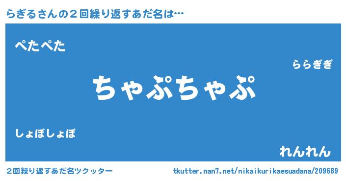 | 男性向けラノベタイトル風あだ名 | 『緋弾のラギル』『はたらくらぎるさま!』 |