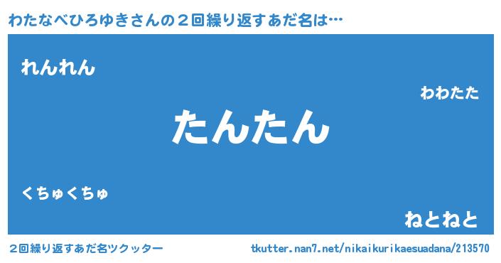 | ヘコむあだ名 | 『わたっ子』『豆乳』『わたもー』 |