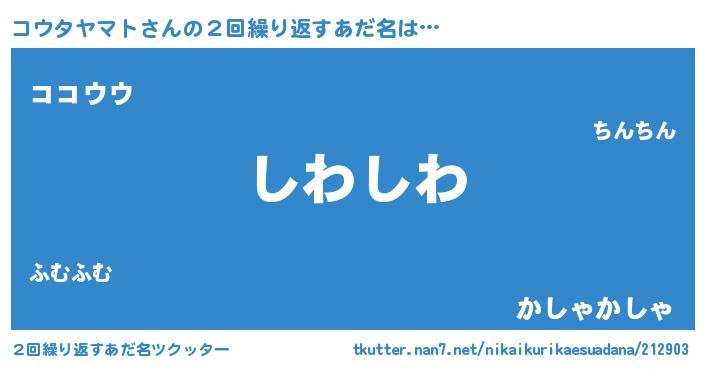 | 意味不明あだ名 | 『住所不定無職コウタヤマト(53歳)』 |