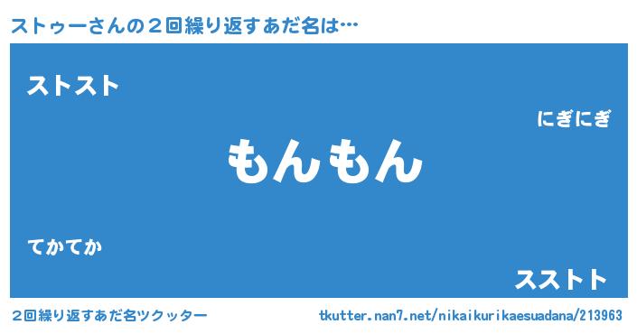 | 男性向けラノベタイトル風あだ名 | 『Re:ストゥーから始める異世界生活』 |