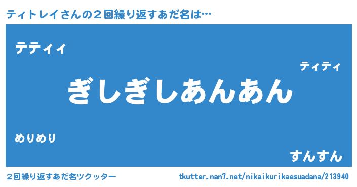 | 意味不明あだ名 | 『永久保存ティトレイ』『自称ティトレイ』 |