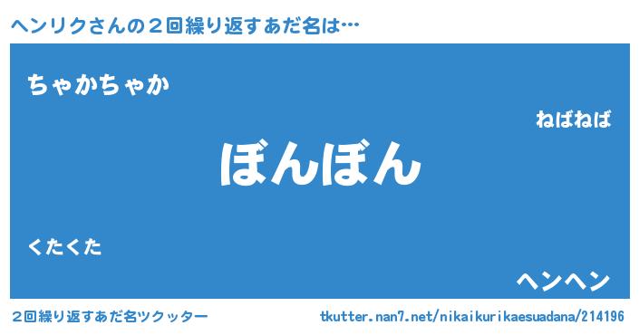 | 男性向けラノベタイトル風あだ名 | 『ノーゲーム・ノーヘンリク』 |