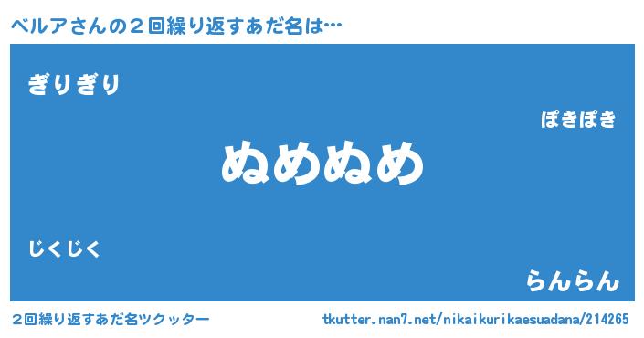 | ヘコむあだ名 | 『ベルを』『ベルア(笑)』『ベルもー』 |
