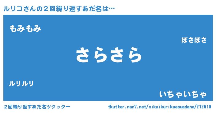 | ピコ太郎風あだ名 | 『ルリ史郎』『ルル太郎』『ルコ八郎』 |