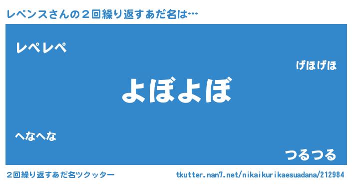 | 男性向けラノベタイトル風あだ名 | 『レペンススレイヤー』『レペンスの憂鬱』 |