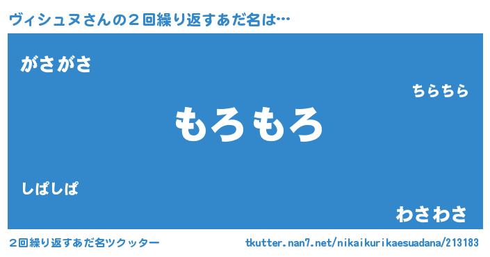 | 男性向けラノベタイトル風あだ名 | 『Re:ヴィシュヌから始める異世界生活』 |