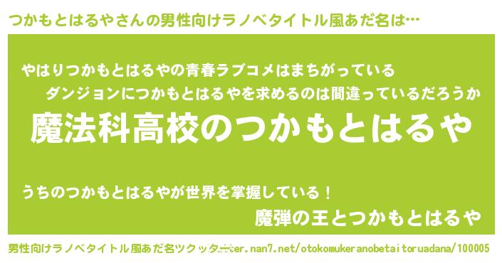 | 意味不明あだ名 | 『自称つかもとはるや』 |