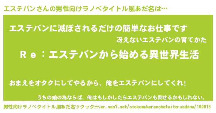 | 女子向けラノベタイトル風あだ名 | 『闇のエステバン』 |
