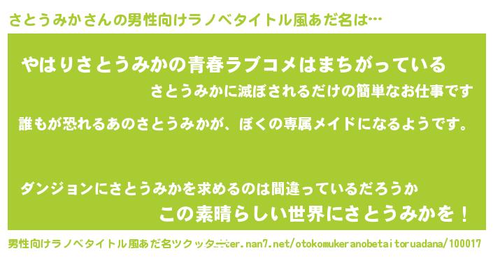 | 意味不明あだ名 | 『永久保存さとうみか』 |