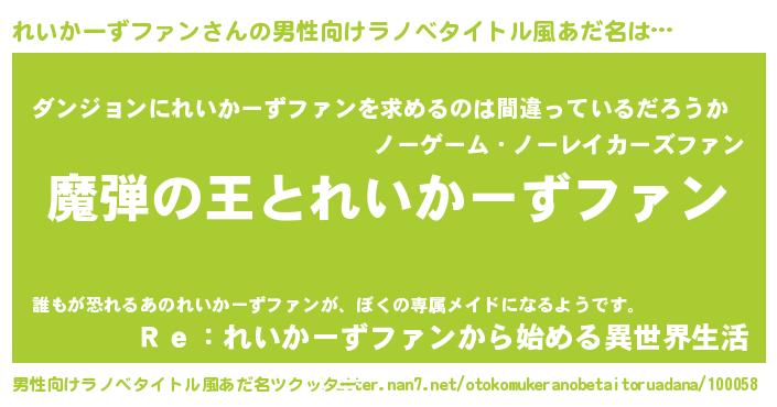 | 意味不明あだ名 | 『住所不定無職れいかーずファン(50歳)』 |
