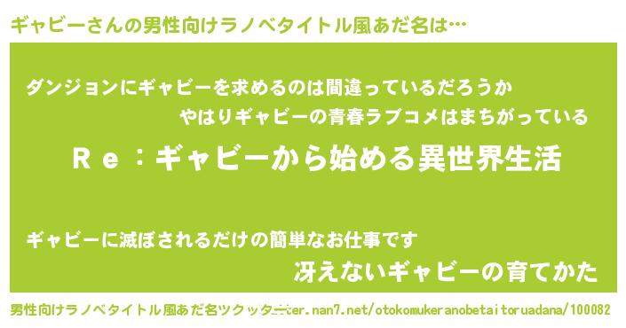 ギャビーさんの男性向けラノベタイトル風あだ名をツクッター!