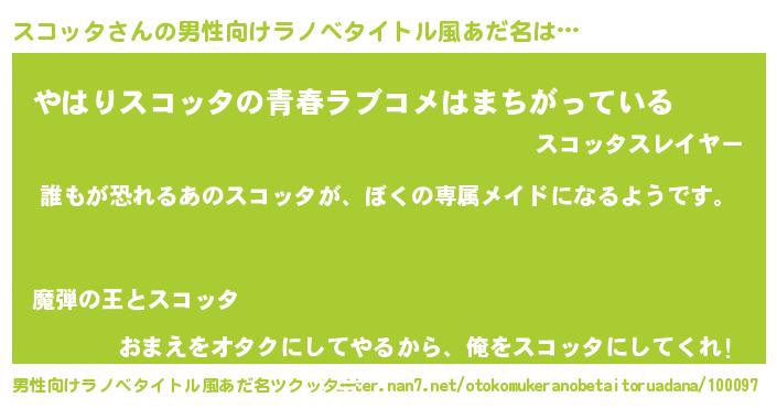 | ヒーロー風カッコイイあだ名 | 『ネオスコッタ』『ウルトラスコッタマン』 |