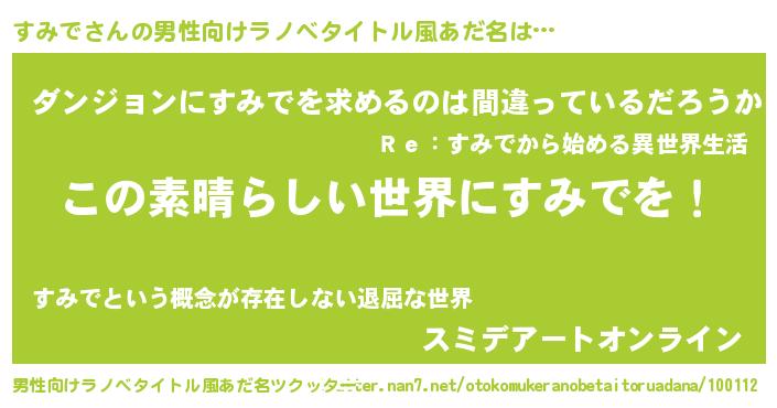 | 意味不明あだ名 | 『住所不定無職すみで(84歳)』『自称すみで』 |