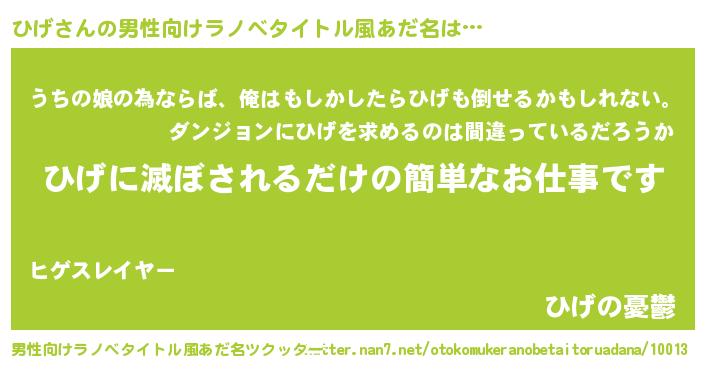 | ファンタジー風あだ名 | 『エターナルヒゲー』『ヒゲフェル』 |