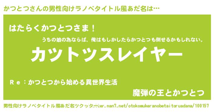 | ヒーロー風カッコイイあだ名 | 『仮面カツダー』『ウルトラかつとつマン』 |