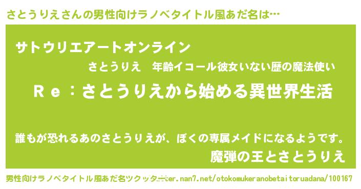 | 女子向けラノベタイトル風あだ名 | 『さとうりえストレイドッグス』 |