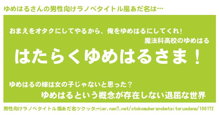 | ヘコむあだ名 | 『ゆめはる(小並感)』『ゆめっ子』 |