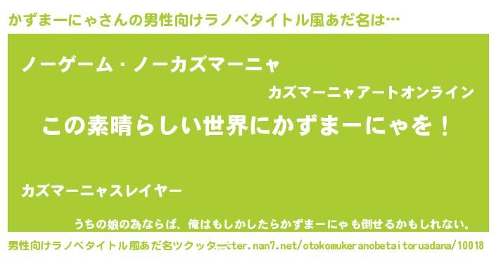 | 胡散臭い通販商品みたいなあだ名 | 『あなたにだけ特別に提供する世界で10本だけ現存している希少なブランデー…その名も「かずまーにゃ」』 |