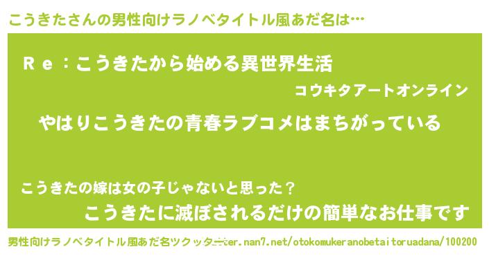 | 意味不明あだ名 | 『こうきたフォーエバー』『自称こうきた』 |