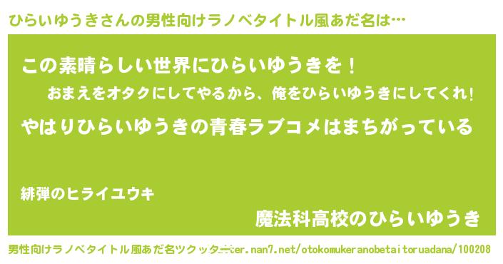 | ファンタジー風あだ名 | 『エターナルヒライユウキー』 |