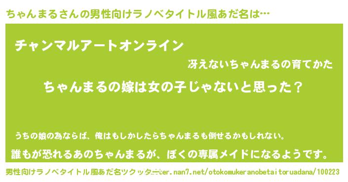 | 意味不明あだ名 | 『とにかく怪しいちゃんまる』 |