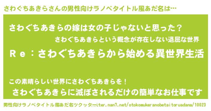 | 女子向けラノベタイトル風あだ名 | 『闇のさわぐちあきら』 |