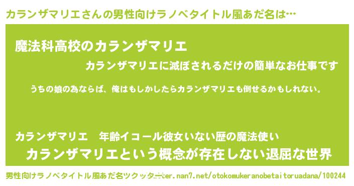 | ファンタジー風あだ名 | 『エターナルカランザマリエー』 |