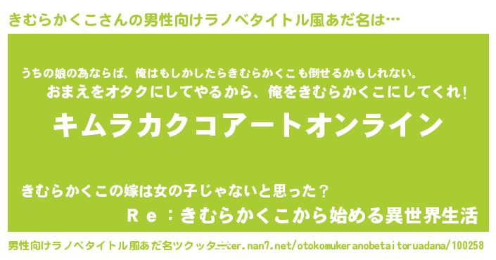 | 女子向けラノベタイトル風あだ名 | 『誰かこのきむらかくこを説明してください! ~契約から始まるウェディング~』 |