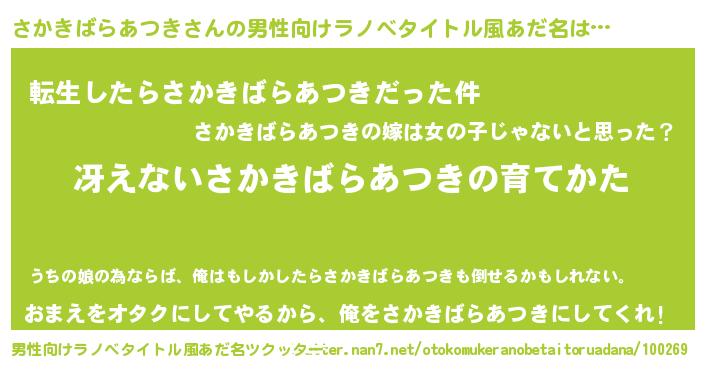 | 胡散臭い通販商品みたいなあだ名 | 『お金では代えられないマグネット磁石…その名も「さかきばらあつき」』 |