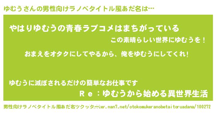 | ヘコむあだ名 | 『豆乳』『ゆむっふぃ~』『ゆむお』 |