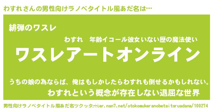 | 胡散臭い通販商品みたいなあだ名 | 『モテモテ間違いなし霊験あらたかなお札…その名も「わすれ」』 |