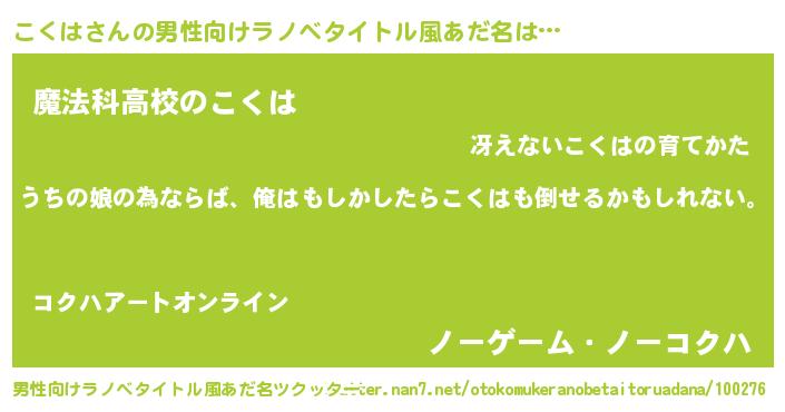 | 女子向けラノベタイトル風あだ名 | 『こくはの婚約者』『こくはアンティーク』 |