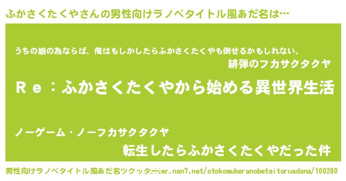| 女子向けラノベタイトル風あだ名 | 『ふかさくたくやストレイドッグス』 |