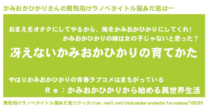 | 女子向けラノベタイトル風あだ名 | 『男装かみおかひかりの憂鬱な任務』 |