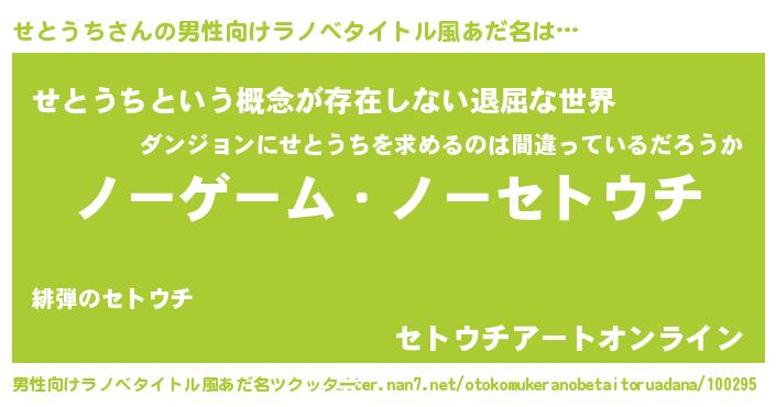| 女子向けラノベタイトル風あだ名 | 『死神せとうちの再婚』 |