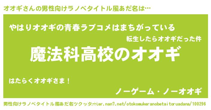 | ファンタジー風あだ名 | 『ゼオオトゥ』『エターナルオオギー』 |