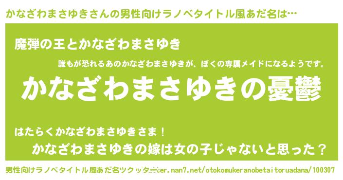 | 女子向けラノベタイトル風あだ名 | 『かなざわまさゆき姫と円卓の騎士』 |