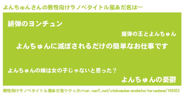 | 胡散臭い通販商品みたいなあだ名 | 『億万長者になれる水晶球…その名も「よんちゅん」』 |