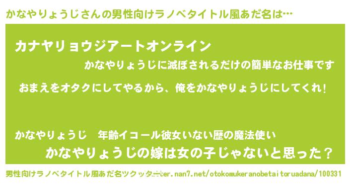 かなやりょうじさんの男性向けラノベタイトル風あだ名をツクッター!