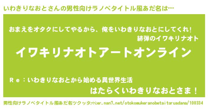 | 女子向けラノベタイトル風あだ名 | 『いわきりなおと姫と円卓の騎士』 |