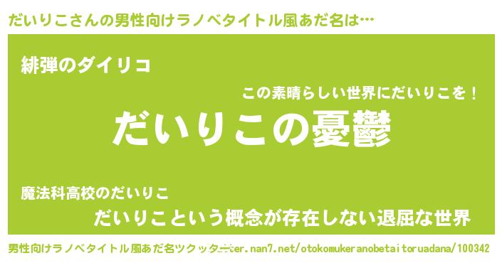 | 女子向けラノベタイトル風あだ名 | 『(仮)だいりこのやんごとなき事情』 |